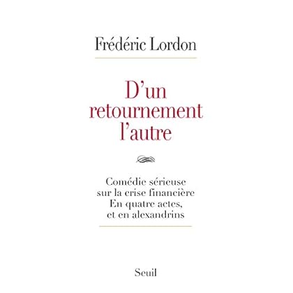 La pièce « D??un retournement l??autre » est passionnante et pleine d??humour, elle se lit d??une traite. L??auteur de théâtre que l??on y découvre est pétillant et cultivé. Il semble, avec beaucoup de gentillesse, appliquer à son lecteur le fameux « principe de charité », en sa compagnie on a vraiment le sentiment d??être plus intelligent. Et pourtant, il est question dans cette pièce d??économie et plus particulièrement de la dernière crise financière. Et pourtant, Frédéric Lordon est un chercheur qui travaille au développement d??une économie politique spinoziste, un économiste qui étudie les logiques du capitalisme actionnarial, les marchés financiers et leurs crises. Nous ne sommes pas habitués à cela. Bien au contraire, le langage économique est le plus souvent abscons et l??envie de qualifier certains économistes médiatiques avec un mot encore plus court est aussi le plus souvent très vive. Dans une très intéressante postface, Frédéric Lordon s??explique. En bon spinosiste, il pense qu??il y a une impossibilité de conversion purement intellectuelle. Il n??y a pas, nous dit-il, de force intrinsèque des idées. Elles doivent être accompagnées d??affect et c??est un des rôles possible de la littérature. Sa pièce est un mélange de vocabulaire très contemporains et de tournures grand siècle. Le président de la République, les ministres, les conseillers, les banquiers manient l??alexandrin. Les protagonistes, hormis un personnage de petite taille à l??ego surdéveloppé, sont désincarnés, sans psychologie particulière. Ce parti-pris perturbe notre perception passive et rompt avec beaucoup d??efficacité le pacte tacite de la croyance que nous avons habituellement en la religion économique et ses grands prêtres. Il s??oppose à toute identification et cette distanciation toute brechtienne dépersonnalise avec beaucoup de bonheur notre perception de la chose économique. La crise s??éternise et en trois années nous avons oublié bien des choses. On ne fait, il faut bien le dire, rien pour nous rafraichir la mémoire. Le temps s??étirant éloigne les causes des effets et rend plus incompréhensible encore le monde dans lequel nous vivons. Les médias dans ce domaine ne font pas non plus ?uvre de pédagogie. Le théâtre à l??avantage du temps ramassé. En 2008, les fameuses subprimes faisaient une entrée fracassante dans notre univers. Des prêts immobiliers sans principe, sans aucune traçabilité possible, s??avéraient irremboursables. Les banquiers, qui avaient fait le choix de ces capitaux à risques et du jeu en bourse au détriment du fonctionnement bancaire ordinaire, se retrouvaient sans fonds propres. Les prêts entre banques qui auraient permis d??amortir cette crise, dans un climat de suspicion généralisé, n??étaient plus possibles. Il était donc fait appel à l??état honnit du système libéral et bancaire pour sauver le dit système. L??état qui a la responsabilité de l??économie qui sans prêt, sans investissement, sans consommation donc, s??effondre, ne pouvait qu??obtempérait. La banque centrale éditait la monnaie nécessaire pour sauver les banques et leur octroyait des prêts sans intérêt. Un fond de garantie pour que les banques se refassent crédit était créé. Que croyez-vous qu??il advint après quelques déclarations sur la moralisation du capitalisme et un sauvetage des banques sans contrepartie ? Les crédits si généreusement octroyés aux banques étaient réinvestis aussitôt en bourse et non prêtés. Six mois plus tard la bourse caracolait et on redistribuait des dividendes aux actionnaires, des bonus aux traders ! La non-réouverture du crédit avait les conséquences que l??on sait sur l??investissement, la croissance, la consommation et les recettes de l??état. Que croyez-vous qu??il advint après la remise en selle du petit monde de la bourse ? Pensez donc, après avoir soulagé les banques de leurs dettes, après la dégringolade de la croissance, le budget de l??état était en faillite. Il ne fallait pas compter sur une reconnaissance en retour du monde de la finance. L??insolvabilité des états étaient instantanément dénoncée par les banques qui attaquaient ses titres et renchérissait son crédit ? Aujourd??hui, c??est donc l??infernale boucle de la rigueur et de la récession qui mène le bal. Elle nous fait tourner la tête, son manège à elle (la crise) c??est nous?Bonne lecture.